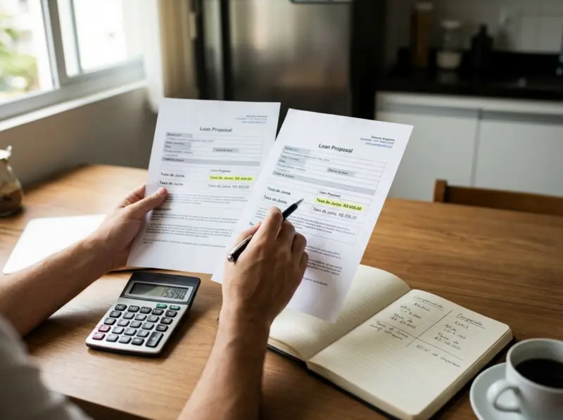 Focar apenas em taxa, ignorando outros termos: prazo, carência,捆绑 de produtos e tarifas cobradas também são negociáveis. Às vezes uma taxa ligeiramente maior com prazos melhores sai mais barato no total.