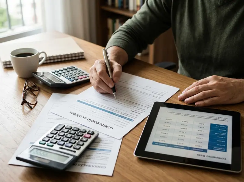 Consolidação foca em simplificar a gestão de múltiplas dívidas. Você deve em dez lugares diferentes? Consolida tudo em um único crédito. O objeto não é melhorar cada dívida individualmente, mas organizar o conjunto.